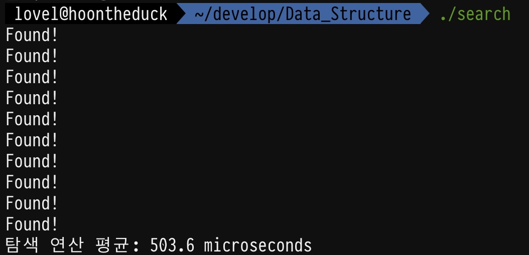 cout << "탐색 연산 평균: " << bin_total / 10 << " microseconds" << endl;